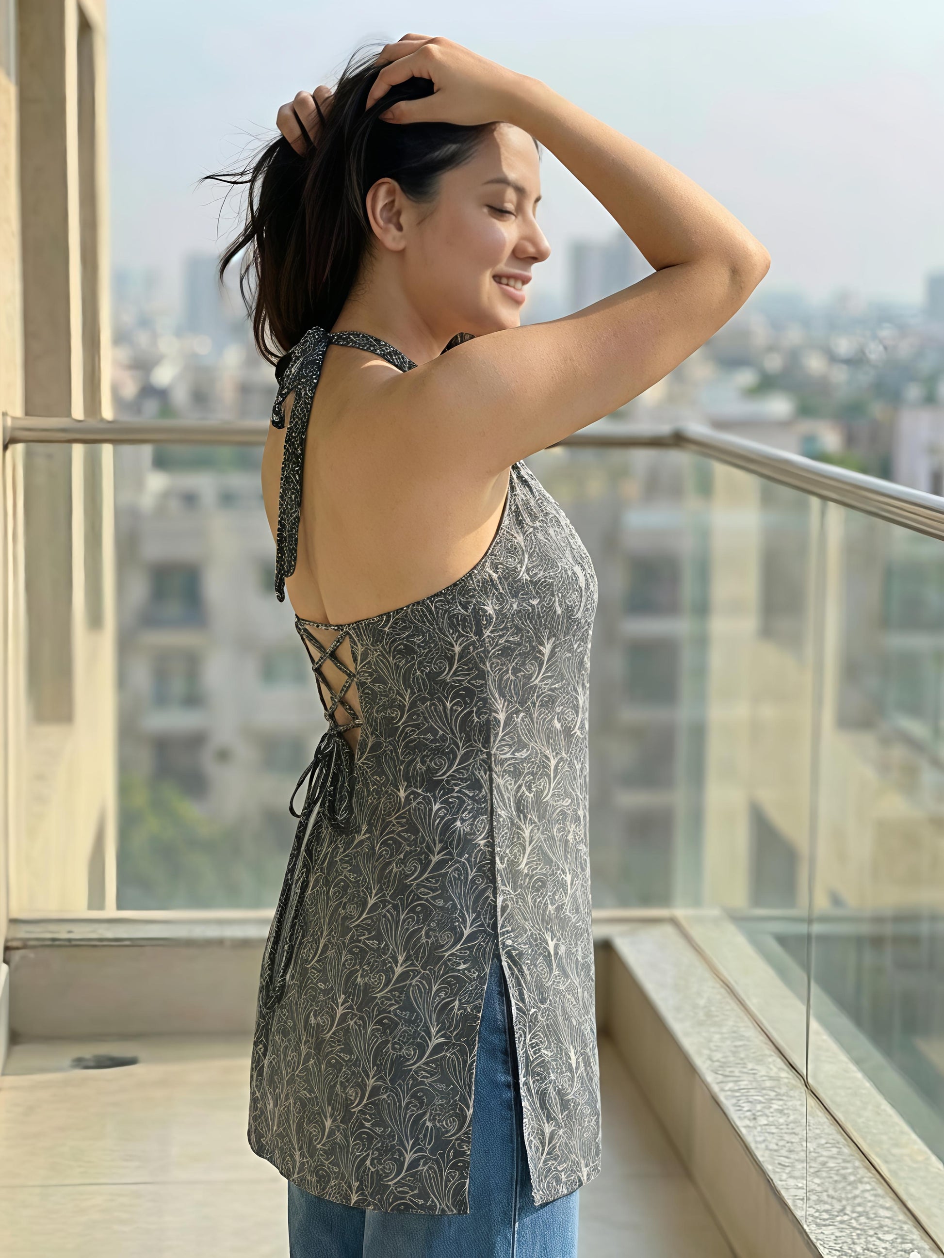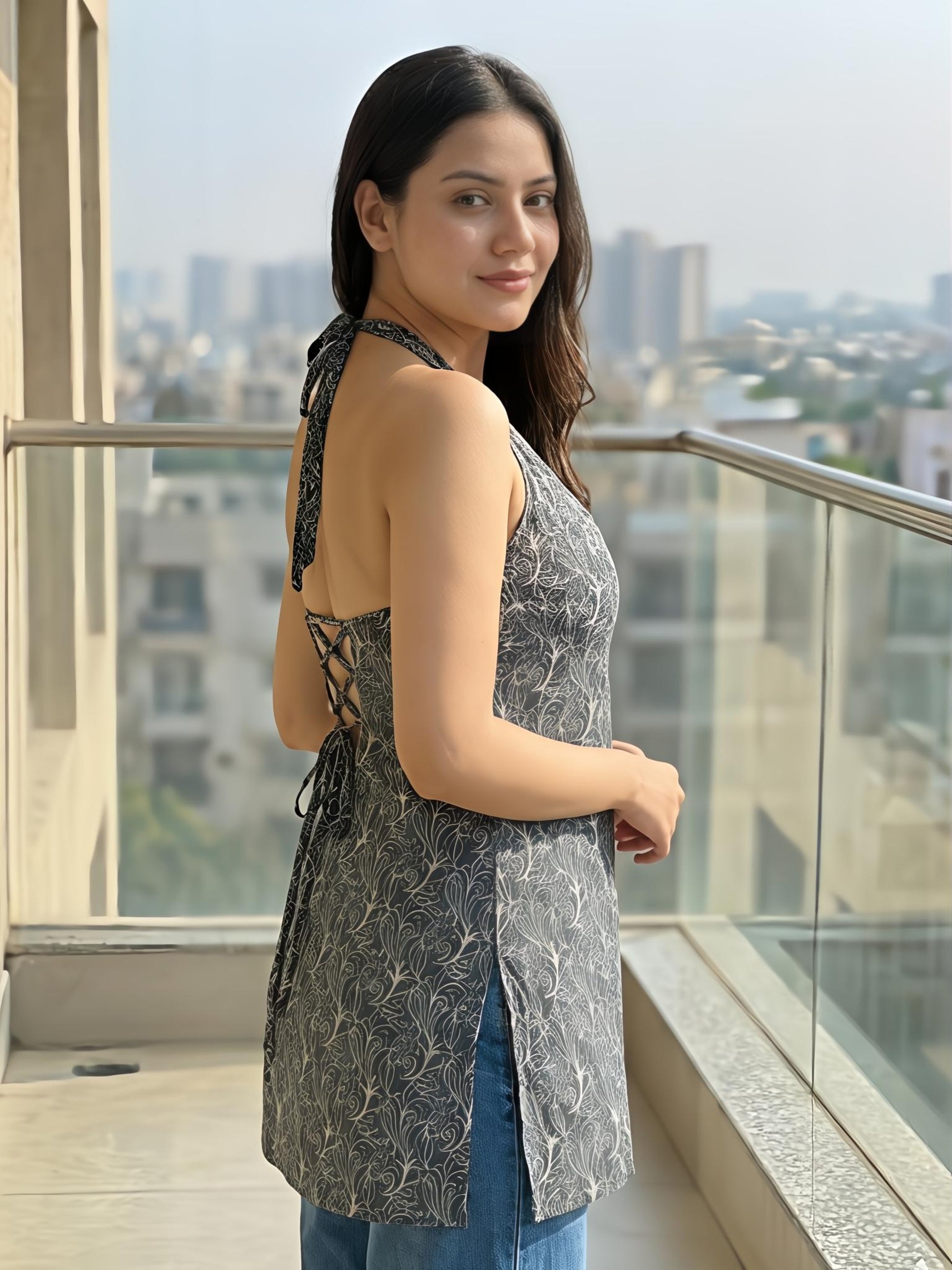 Features Halter-Neck, Corset-Back Short Kurti